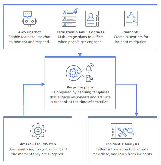 - Incident Manager, you can perform an automated response plan using runbooks. Nice Diagram on how it works